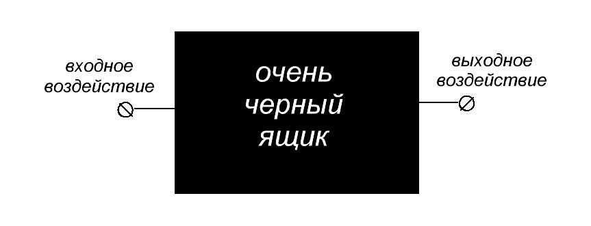 То есть по сути черный ящик должен иметь какие-либо «сенсоры» для восприятия информации извне, некий «вход», а также некий «выход» для ответной реакции. То есть подавая на вход какое-либо воздействие, мы ждем ответной реакции черного ящика на выходе.