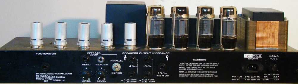 Усилители NOVIK MK 60/120 — это одноканальные ламповые усилители, выполненные в отдельном корпусе (голова). Модели отличаются только количеством выходных ламп (2 -5881 или 4- 5881) и соответственно оконечным каскадом.