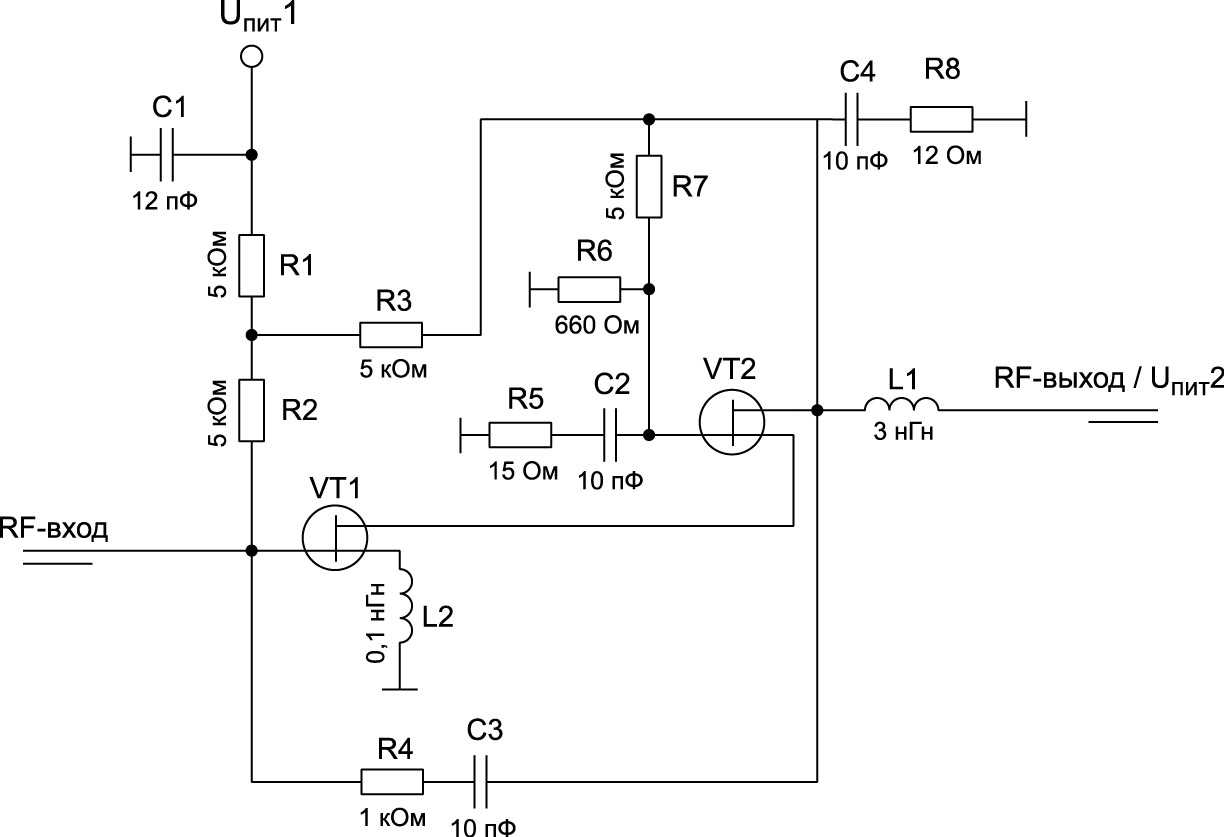Рис. 1. Принципиальная схема малошумящих усилителей