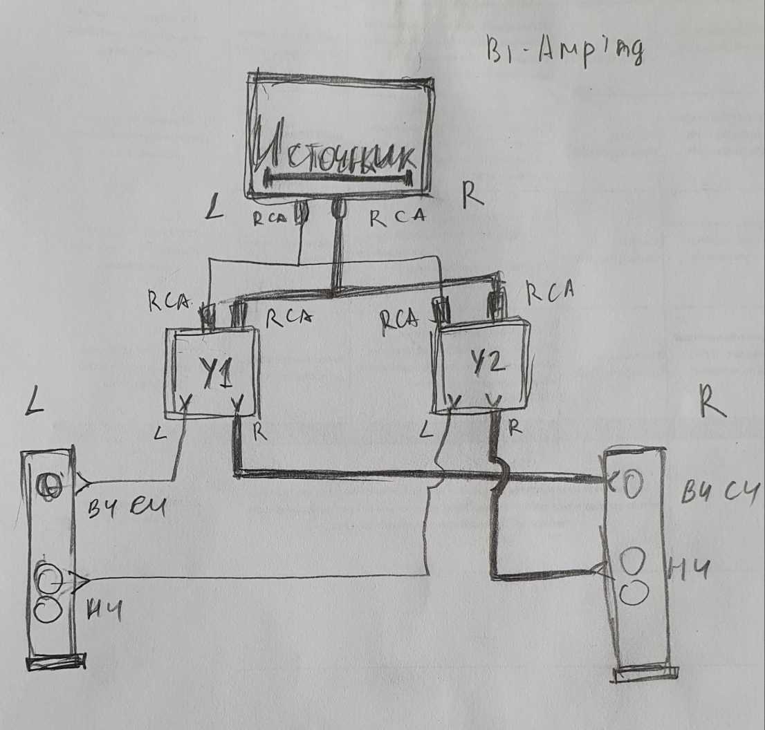Как подключить источник к двум усилителям (Bi-amping)?