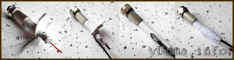 Так как я решил подключить блок питания к крабу через один из его F-разъемов, то для реализации этой идеи пришлось сделать переходник с обыкновенного двойного провода идущего с блока питания на коаксиальный кабель.