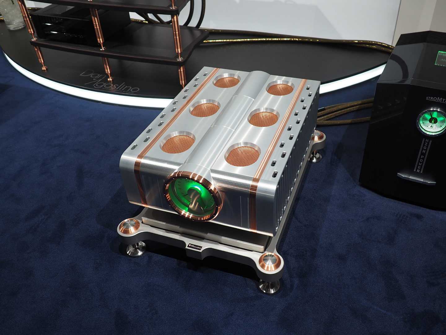 В системе с усилителями Dan D’Agostino была возможность оценить, как работают топовые моноблоки Relentless Monoblock в паре с Momentum HD Preamplifier. Моноблоки просто чудовищного веса — по 258 кг каждый. И заявленная мощность составляет 1 500 Вт на 8 Ом. Формально, это нечто запредельное.