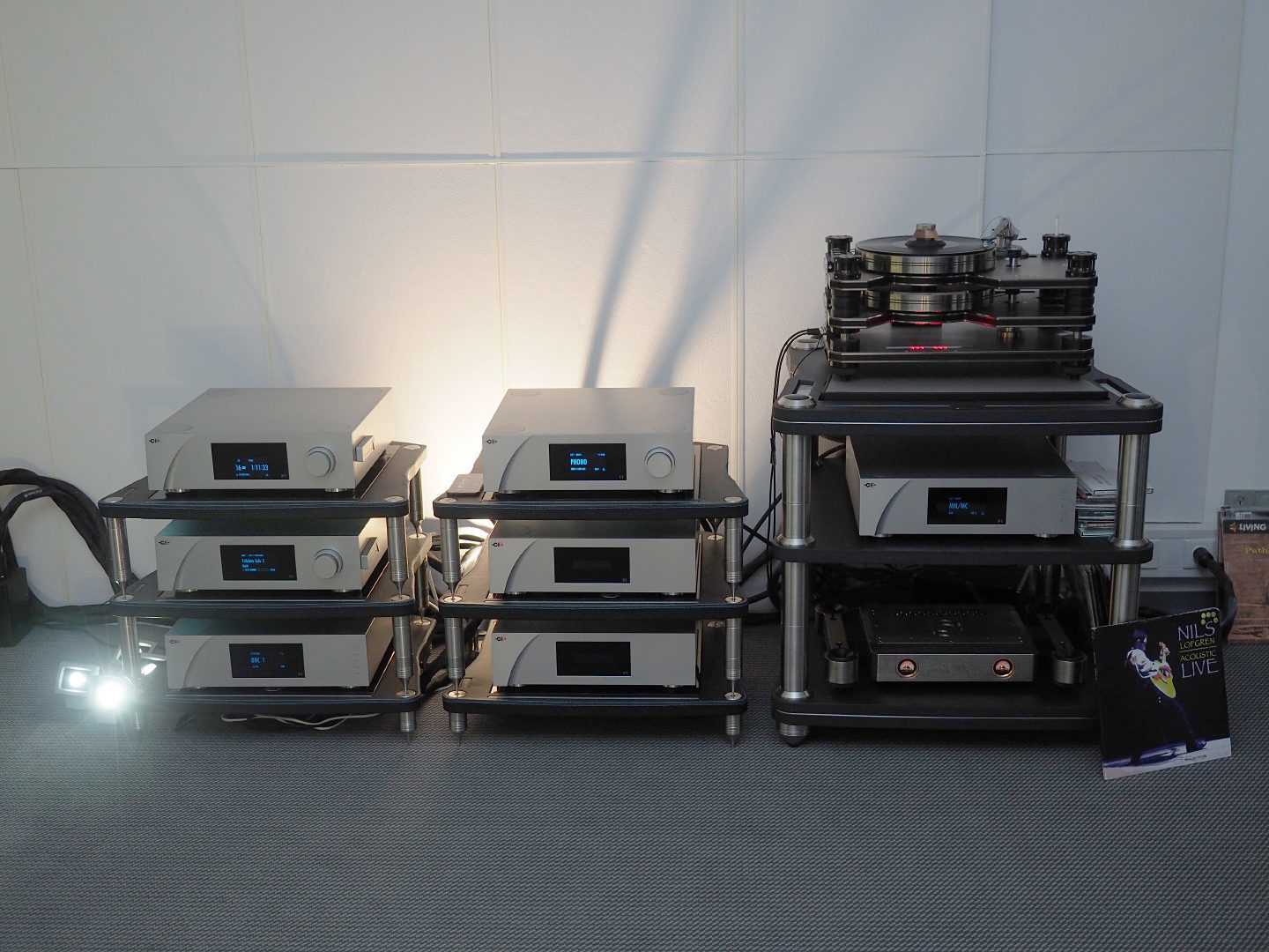 Обращает на себя внимание обилие компонентов в системе — и все свое. Компания выпускает и свой дисковый транспорт, и ЦАП, и различные усилители, и активные кроссоверы
