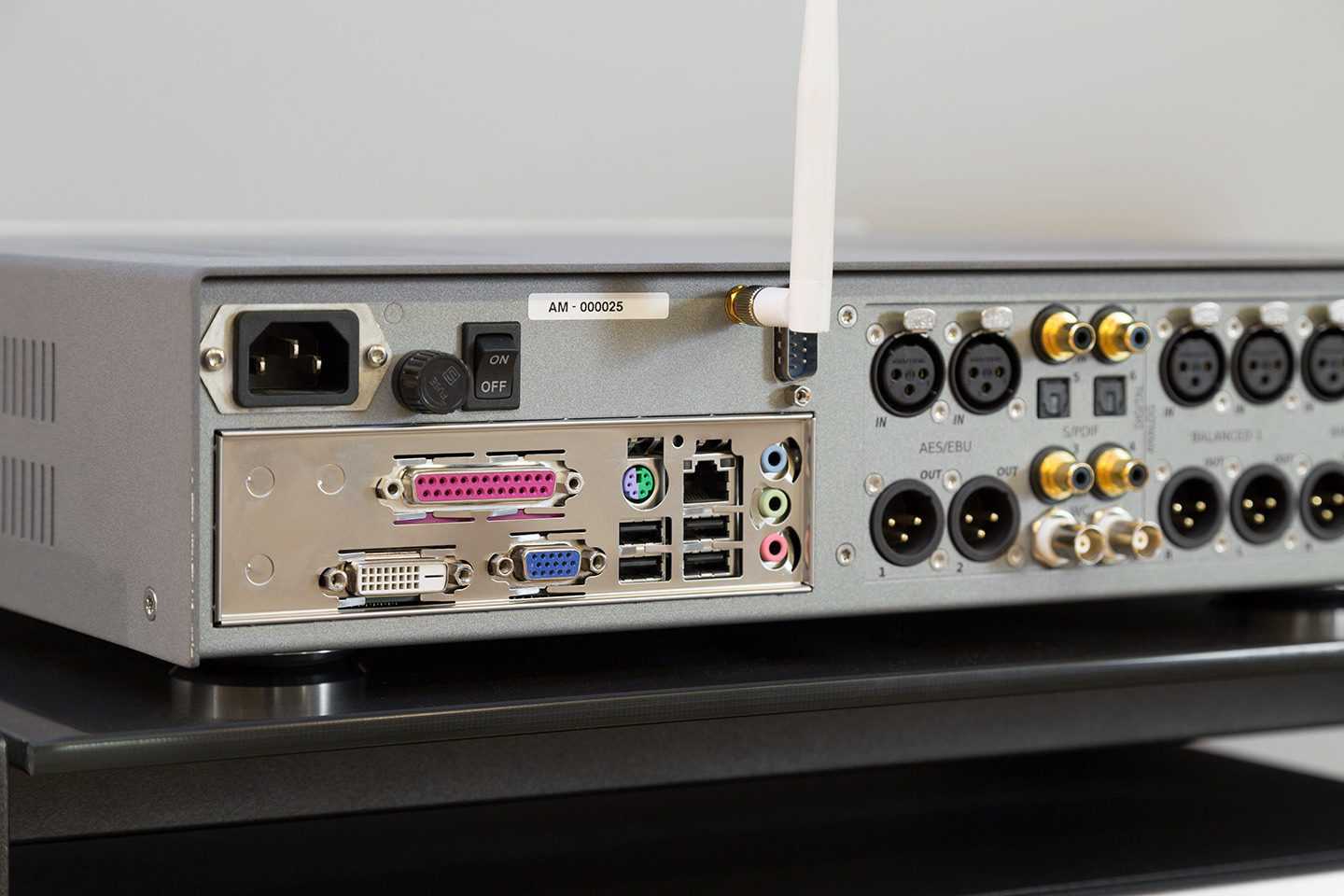 Вид сзади выдает необычную природу Trinnov Amethyst. Рядом со всевозможными входами и выходами, которыми и должен обладать High-End-компонент, располагается вполне узнаваемый задник мини-компьютера с VGA-выходом для монитора, USB-портами и разъемами PS/2 для подключения мышки с клавиатурой. Подключение стандартной компьютерной периферии является самым простым способом получения доступа к полной версии интерфейса устройства. Для продвинутых пользователей есть вариант немного сложнее — с компьютера через интерфейс, работающий по протоколу VNC, те же, кто считают себя хакерами, могут попробовать достучаться до устройства через Telnet. Но вернемся-ка мы лучше к вопросам «железа», а именно — вопросам интеграции Trinnov Amethyst в аудиосистему.