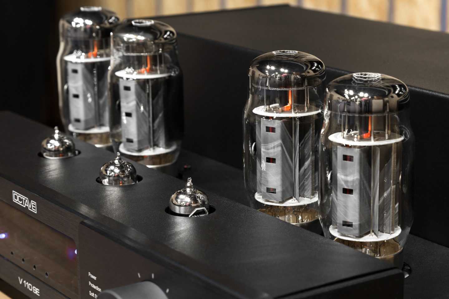 В конструкции V110 — никакого «ретро»: усилитель сочетает современную схемотехнику, фирменные технологии Octave и лучшие комплектующие. Так, вместо алюминиевых конденсаторов применяются танталовые с минимальным током утечки. Схемы прогрева и питания контролируются особым модулем, что гарантирует стабильную работу при отклонении входного напряжения до 15% от номинала. Каждая лампа выходного каскада защищена от перенапряжения и других проблем, связанных с выработкой ресурса лампы.