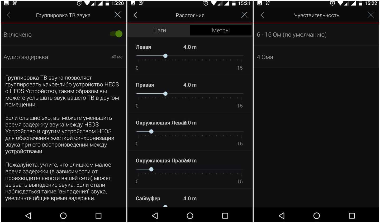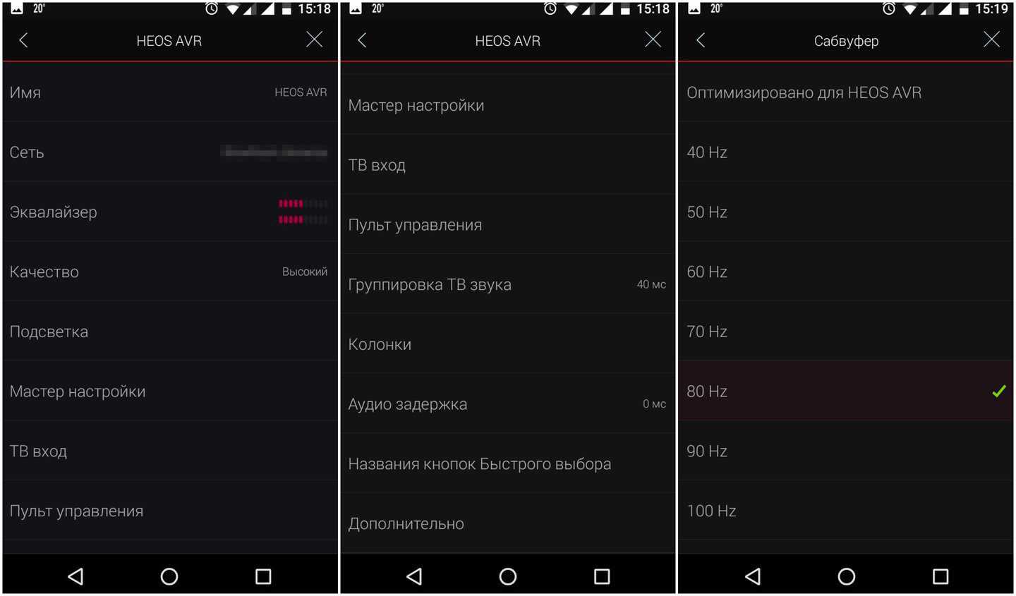Доступные конфигурации кинотеатра ограничены форматом 5.1. Ничего сложнее этого экосистема Heos не поддерживает. Зато можно сформировать более скромные системы (типа 3.1, трифоника или классического стерео). Любопытно, что имеющий пять встроенных усилителей Heos AVR умеет работать и с другими мультирум-колонками Heos. Например, тыл или сабвуфер могут быть беспроводными, их нужно просто сгруппировать с AVR в приложении.