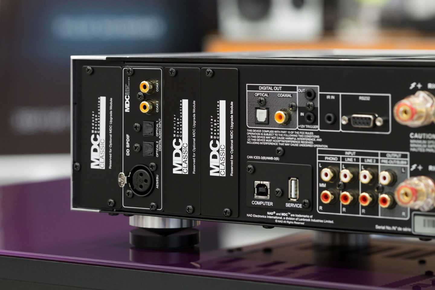 Все это — часть фирменной технологии (или, если хотите, стратегии), называемой MDC (Modular Design Construction) и призванной защитить усилитель от морального устаревания, а оно в связи с бурным развитием цифровых форматов может наступить очень быстро.