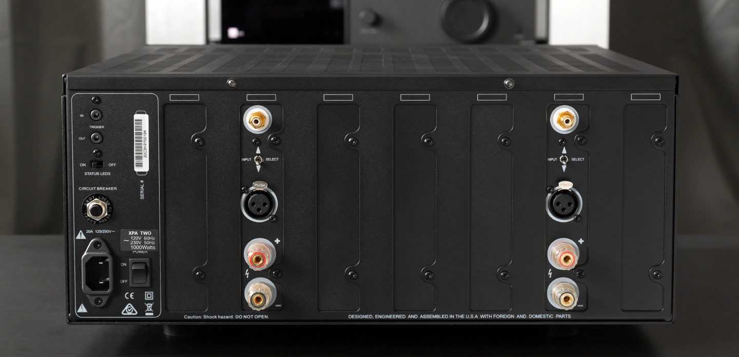 Усилитель мощности Emotiva XPA-2 Gen3 имеет модульную конструкцию, доступны конфигурации от 2- до 11-канальной. В каталоге компании есть кинотеатральные процессоры от 7.1 до 16 каналов, для которых и нужно все это разнообразие. Выпускается два типа модулей: одно- или двухканальные, соответственно, большей и меньшей мощности. Нужную конфигурацию следует заказывать изначально, однако возможно и наращивание — российский дистрибьютор уже пообещал в скором времени наладить поставки отдельных модулей.