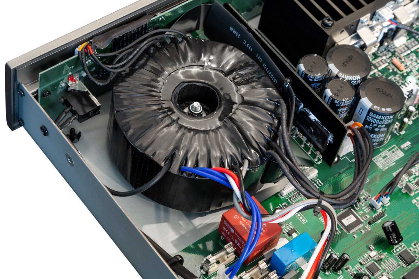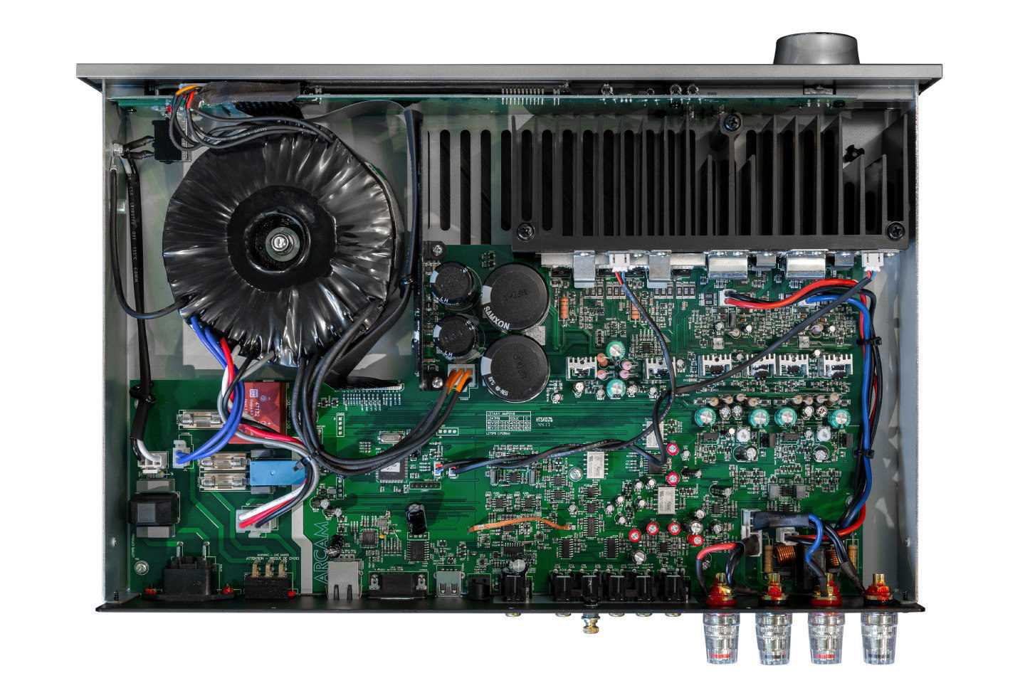 Благодаря высокой эффективности класса G радиаторы выходных транзисторов удалось упрятать внутрь корпуса