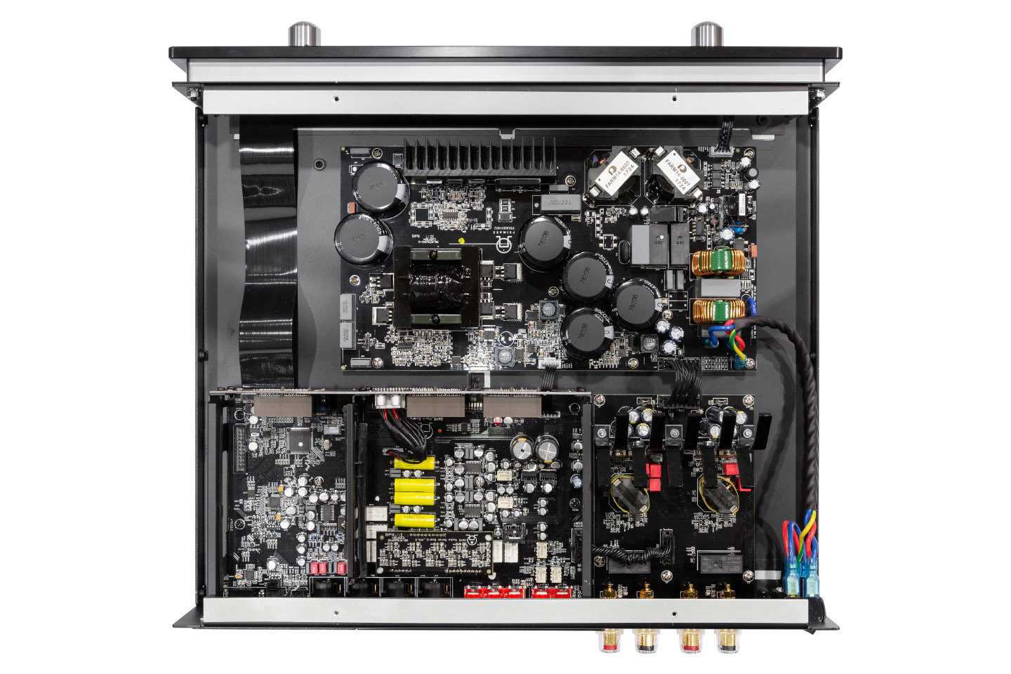 Как и CD-проигрыватель, усилитель можно доукомплектовать сетевым модулем Prisma, а также модулем ЦАПа с USB-портом и большим набором входов SPDIF. Любопытно, что встраиваемый в усилитель ЦАП базируется на другой микросхеме: вместо Sabre от ESS в нем установлен АК4497 от АКМ. Это дает возможность выбора при компоновке стереосистемы. Но об этом как-нибудь в следующий раз.
