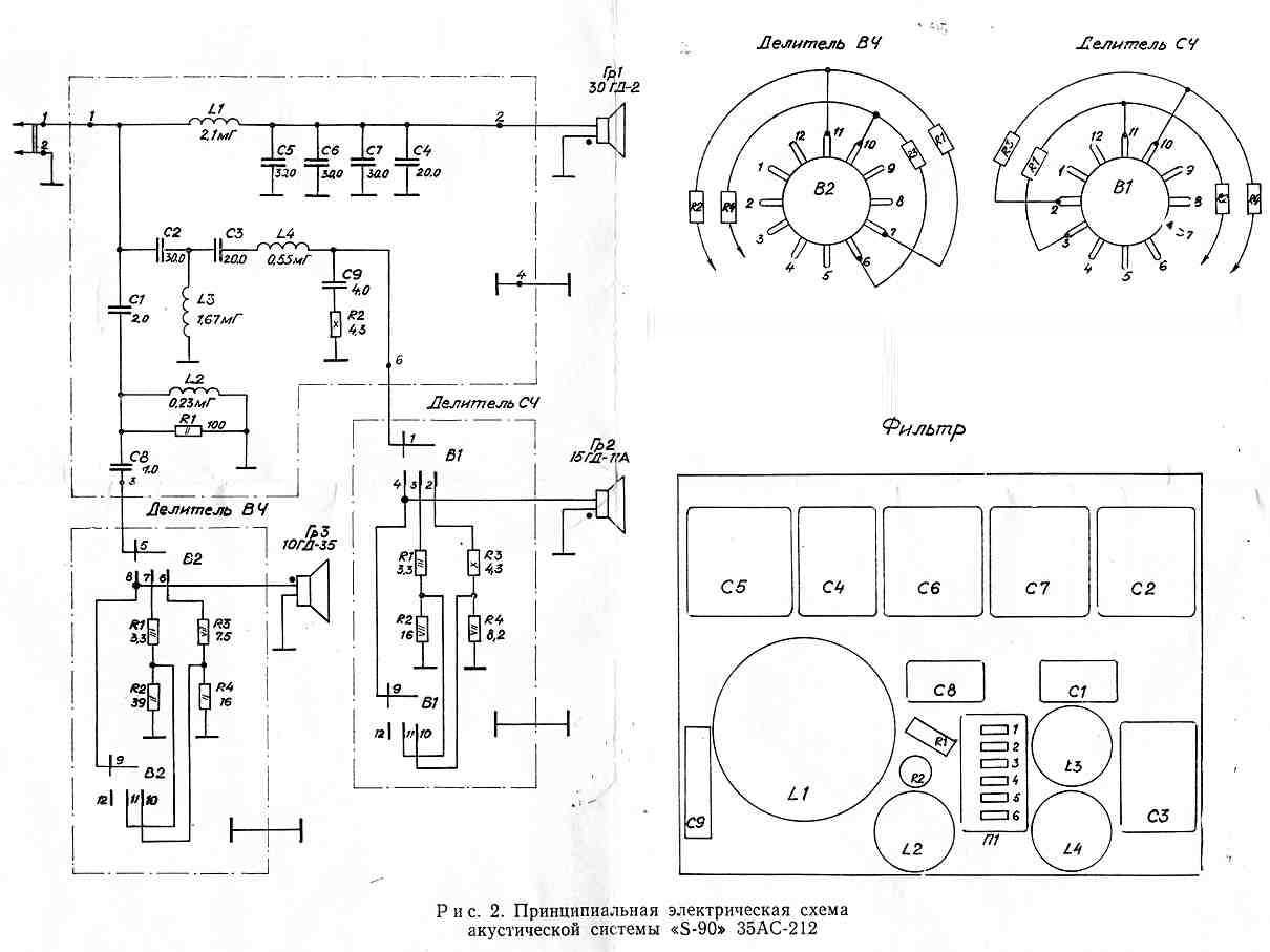 Рис. 2. Принципиальная схема акустических колонок S90 35АС-212.