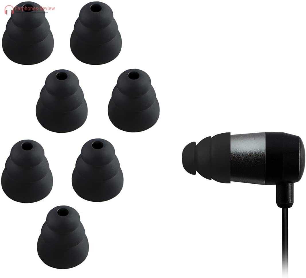 Такая разновидность аксессуара имеет 2 специальные насадки – лепестки и елочки, которые отличаются друг от друга по диаметру. Они обеспечивают хорошее шумоподавление, что благоприятно сказывается на звучании. Их преимущество в том, что использовать с ними наушники можно даже в условиях с высоким уровнем шума.