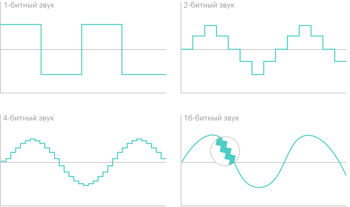 Чем больше данных при оцифровке получится сохранить, тем ближе результат к исходной форме аналогового сигнала. Разрядность большинства музыкальных файлов в интернете — 16 бит