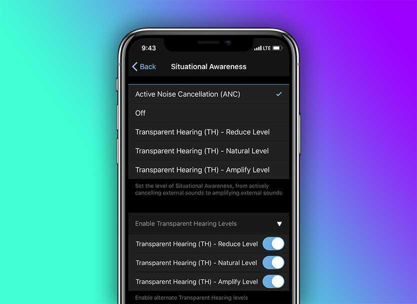 Есть три режима работы «Прозрачного слуха». Пониженный уровень работает как беруши, пропуская в динамики внешний шум с пониженной громкостью. Естественный уровень передает внешние звуки так, как они слышались бы без наушников. Думаю, вы угадаете, что делает усиленный уровень.
