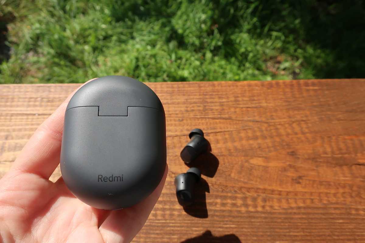 На оборотной стороне футляра компактно нанесен логотип Redmi, который одновременно служит ориентиром при позиционировании наушников на базу для беспроводной зарядки (стандарта Qi).