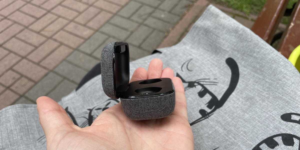 В целом выглядит классно, но я несколько сомневаюсь в практичности — тканевый кейс можно чем-то запачкать, это что-то впитается и оттереть будет сложнее, чем пластиковый. Зато тут нет проблемы царапин как у многих наушников в глянцевых боксах, которым приходится покупать «чехлы для чехла».