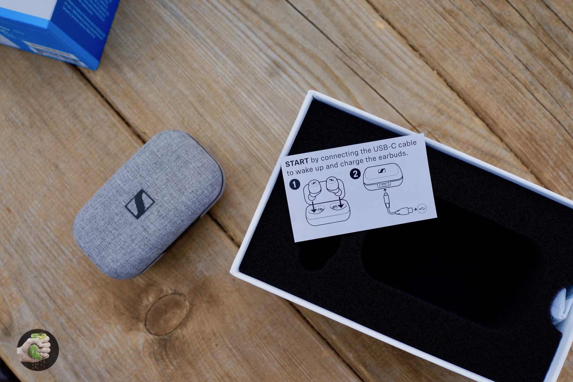 Sennheiser Momentum True Wireless 2 поставляются в более-менее стандартной для сегмента комплектации: сами наушники, зарядный кейс, 4 пары амбушюр (одна из них уже надета), кабель USB-USB Type-C и документация. Амбушюр на одну пару больше, чем у многих. Добавлен особо маленький размер.