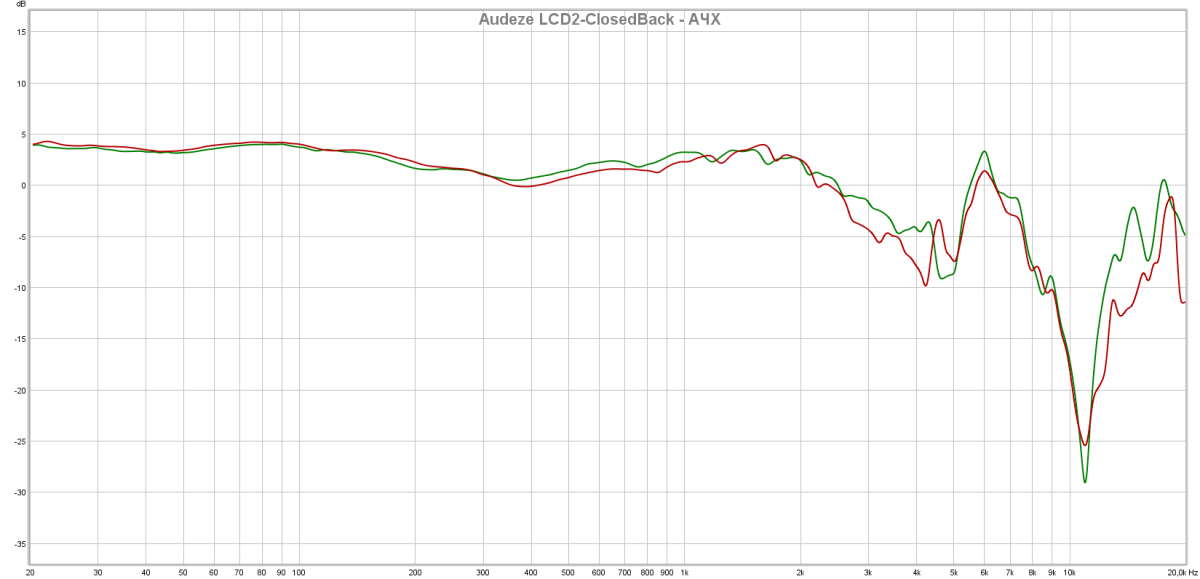 It should be noted that there may have been some unit variance for the LCD-XC, but this could also be due to the effect of the really thick pads, so you may see measurements of this headphone that look a bit different from other sources. This one was also measured in 2020, so older measurements may also look a bit different if any revision has occurred.