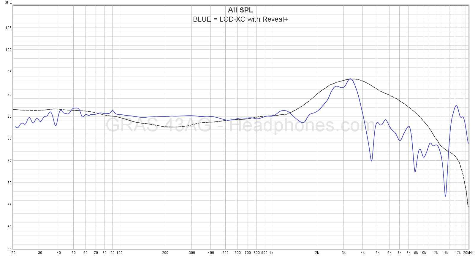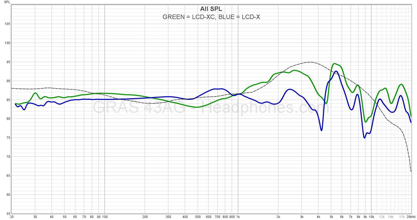 We can see just how much closer the LCD-XC gets to the target here, but it should be pointed out that not all LCD-Xs measure the same, and this is the one from early 2020 with the mesh grille on the side — but even on older revisions that I’ve seen they still look a bit withdrawn around 3khz.