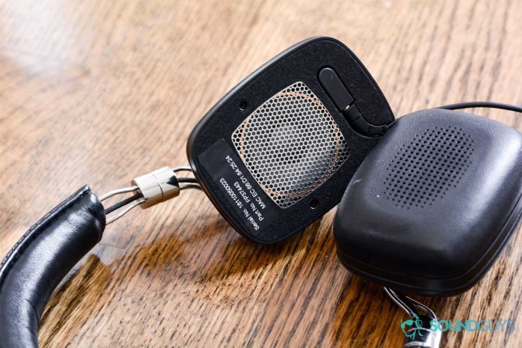 Продолжая сравнивать устройства, можно обнаружить еще одно сходство — съемные накладки для ушей, под которыми прячется 2,5-миллиметровый разъем для подключения кабеля. Он подсоединяется лишь к одному наушнику, но амбушюры можно снять с обоих.