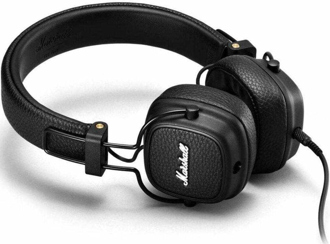 Проводные недорогие накладные наушники Marshall Major III (57$) — это классный дизайн, солидное время автономной работы и достаточно прочная складная конструкция, их не страшно положить в рюкзак.