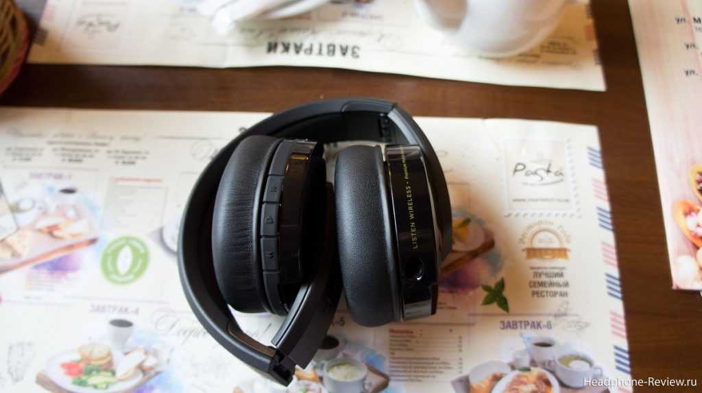 На левой чаше находится гнездо для подключения аудиокабеля, внутрь встроен NFCмодуль для мгновенного сопряжения с новым мобильным телефоном.