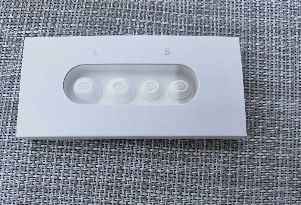 Достаточно стандартный набор для TWS-наушников. Конечно же, хотелось бы еще и блок питания получить в комплекте, но в таких решениях производители обычно его не добавляют. Упаковка жесткая, и каждый из элементов внутри имеет отдельный отсек, благодаря чему при встряхивании коробки ничего не повредится.