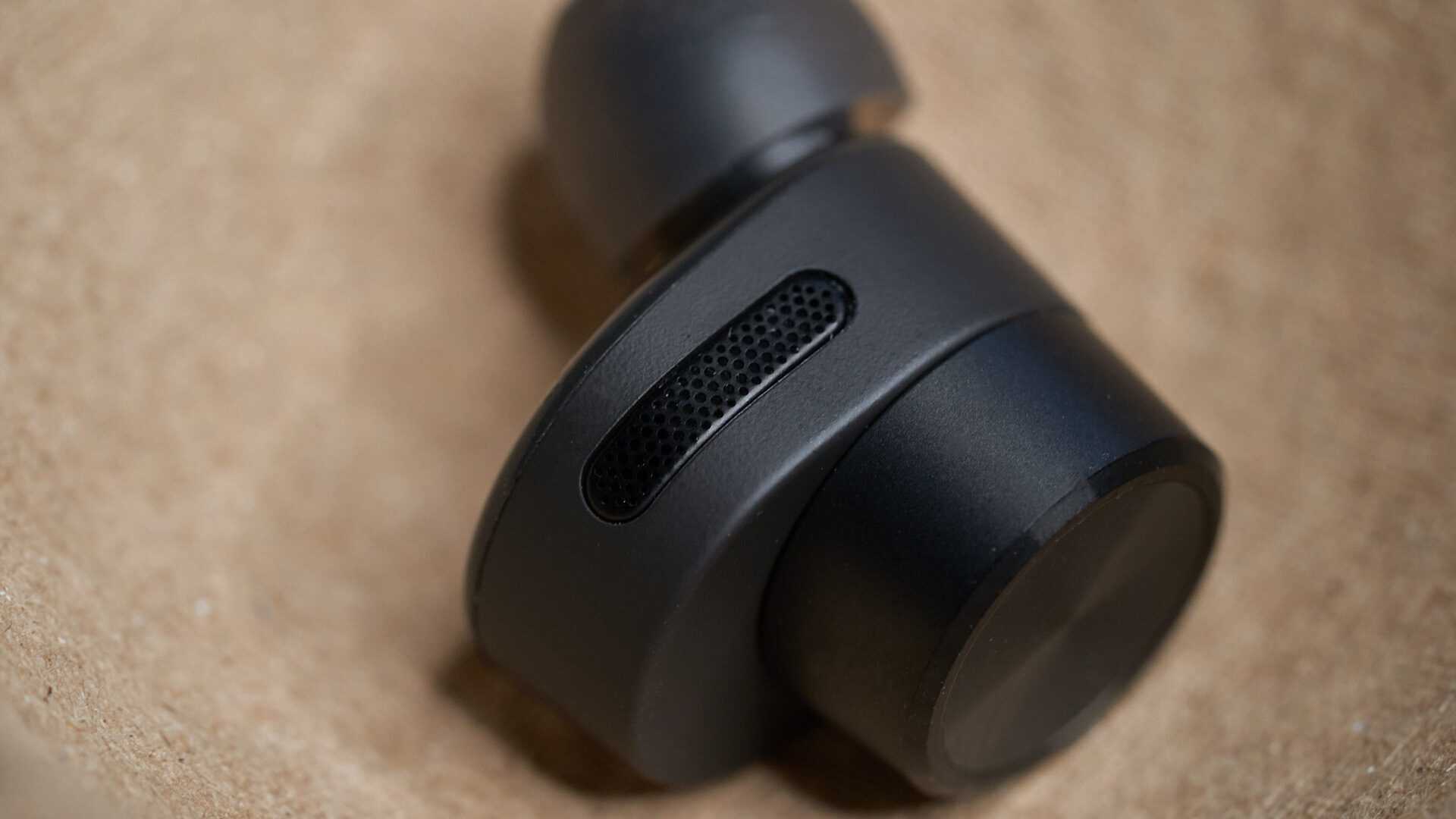Под маленькими решетками скрываются микрофоны — и разговорные, и системы шумоподавления. Внутренняя часть наушников — тот самый конус, который переходит в звуковод — оформлен глянцевым пластиком, в то время как все остальные элементы матовые. Сам звуковод, защищенный мелкой текстильной сеткой, короткий, но за счет формы корпуса это особо не чувствуется: наушники можно без проблем посадить достаточно глубоко в ушах.