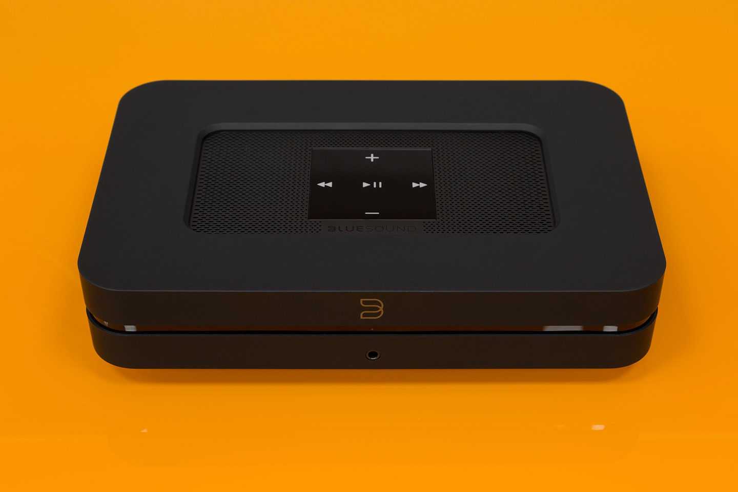 На эту роль был выбран сетевой плеер Bluesound Node 2. С одной стороны, это —полноценный Hi-Fi компонент, а с другой — компактное устройство, которое можно использовать как настольный сетевой плеер, работающий и с активной акустикой, и с наушниками.