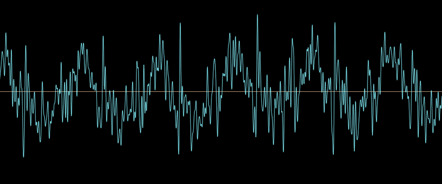 На малых уровнях (–90 дБ) синус искажается в шумах квантования