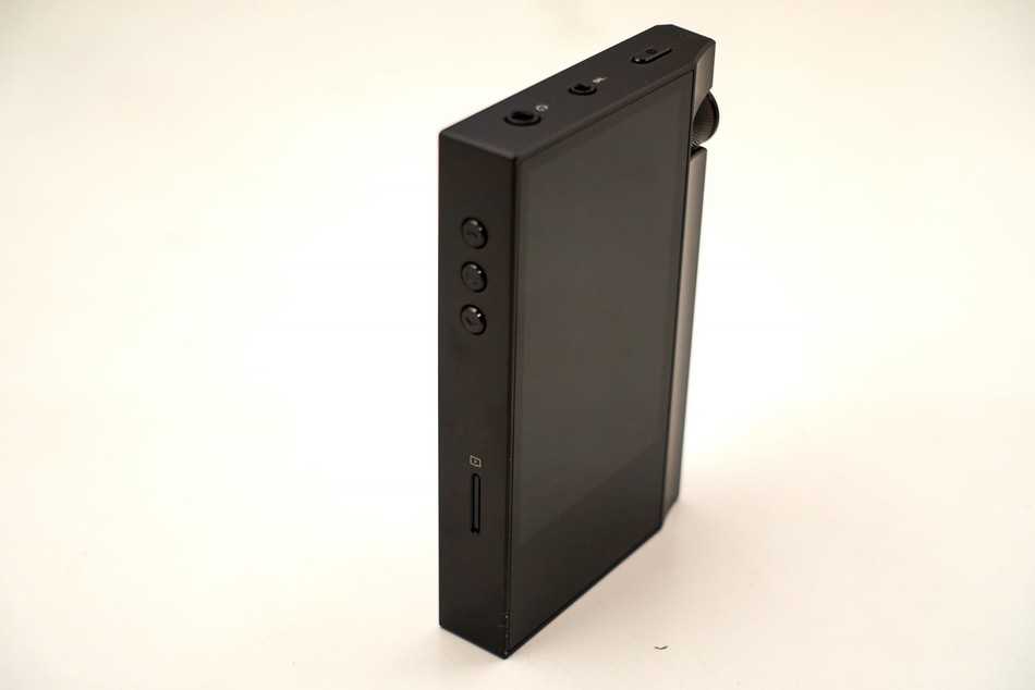 На левой гране размещены кнопки навигации и воспроизведения, а также слот для карт MicroSD. Снизу находится вход Miсro USB. Несмотря на то, что плеер совсем новый, популярного USB Type-C тут нет, видимо еще долго придется таскать с собой пачку проводов или переходников.
