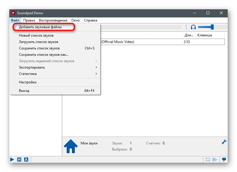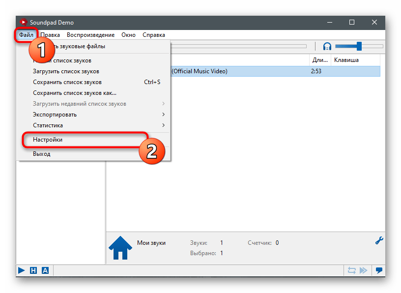 - После успешной установки Soundpad через Steam или с официального сайта откройте меню «Файл» и выберите пункт «Настройки».
