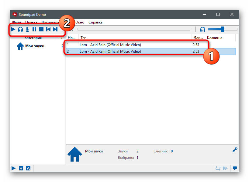 Теперь вы можете воспроизводить их или транслировать в микрофон, предварительно выделяя нажатием левой кнопкой мыши по соответствующей строке в списке.