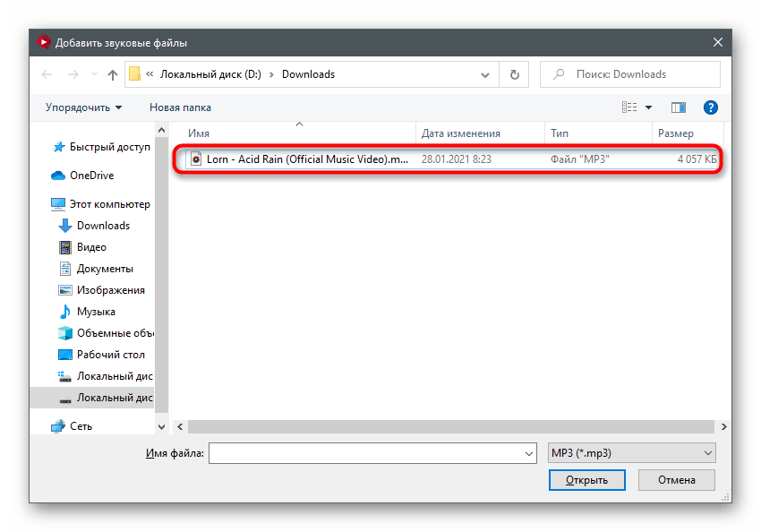 В «Проводнике» отыщите подходящую музыку или отдельные звуки и добавьте их все в программу.