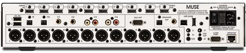 The Muse works with 3rd-party room tuning systems as well as Acurus’ own room correction technology, ASPEQT. The Muse is HDMI 2.0b (2.1 ready) and HDCP 2.2 compliant, offering the highest level of HDR support, and with ultra-fast audio format switching.