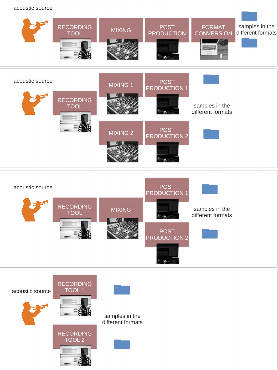 На картинке выше изображены несколько путей производства тестовых музыкальных записей.