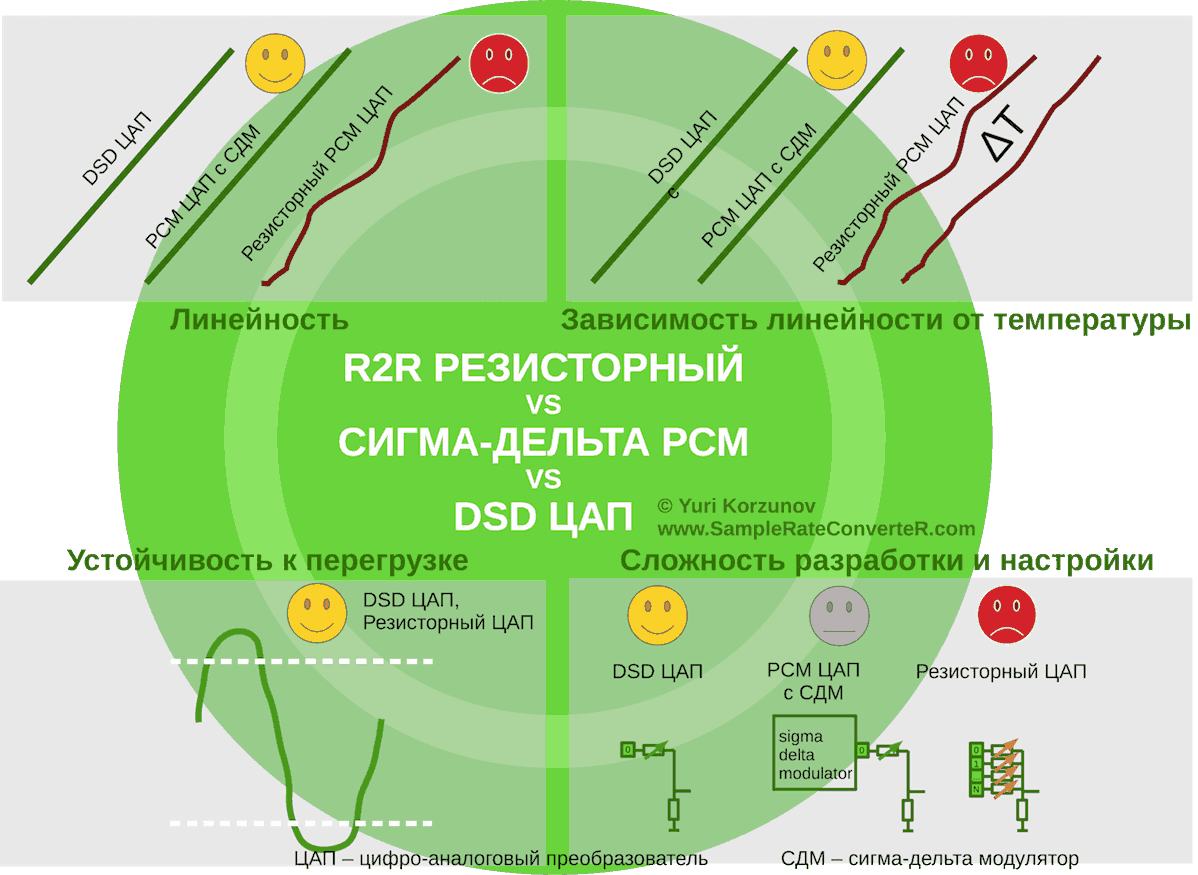 Сравнение R2R ЦАП vs дельта сигма ЦАП (PCM) vs DSD DAC