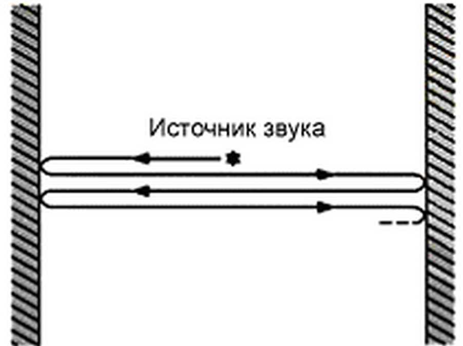 Немного иначе, “порхающее эхо” возникает после размещения звука между параллельными, гладкими поверхностями с высокой отражающей способностью.