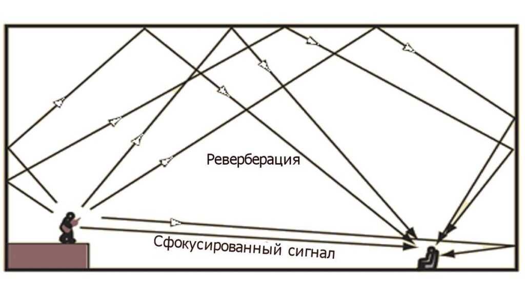 Присутствие в помещении очень большого количества отраженного звукового сигнала будет выражаться в “звонкости” самого помещения. В среде специалистов, это понятие называют – время реверберации, это – длительность затухания звука, выраженное временем, которое нужно для его ослабления в тысячу раз. Это примерно на 60 дБ, можно сказать – почти к неслышимому уровню звука. Так сказать, будет слышен эффект “эхо” . Такая комната практически не пригодна для прослушивания музыки. Нормально воспринимать её будет очень проблемно.