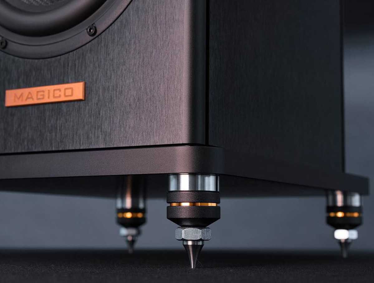 Как правило в комплекте с напольными АС идут шипы (для полочных громкоговорителей придется купить специальные стойки). Лучше всего менять систему развязки от пола, приобретая более массивные опоры и шипы, так звучание станет более точным по части баса. Улучшится и общая достоверность саунда.
