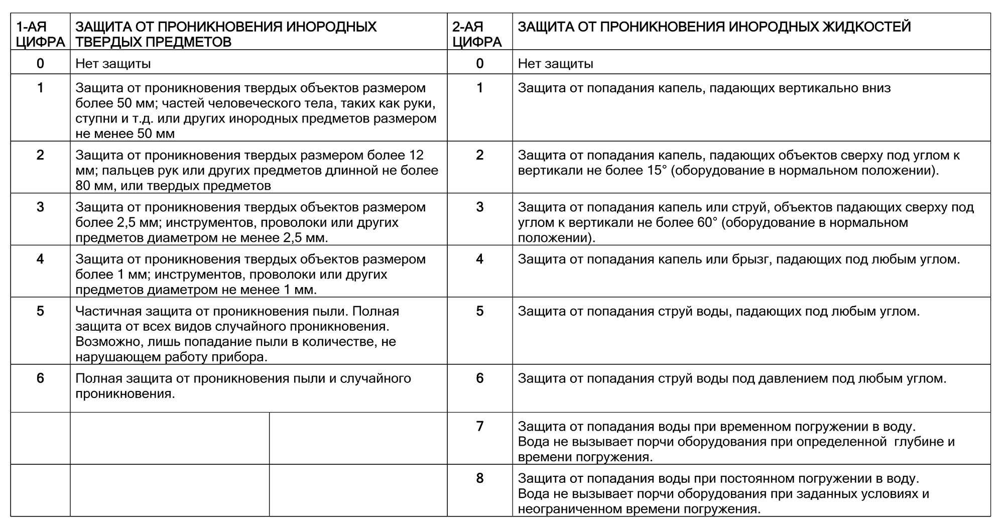 Для конкретизации этих данных и расшифровки степени защиты следует обратиться к таблице, согласно которой речь идет о конкретном образце техники, который: