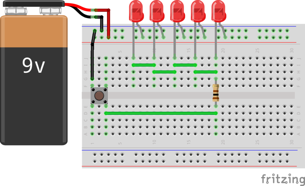 Собираем схему и проводим небольшой тест. Попробуем управлять гирляндой согласно нехитрому алгоритму: