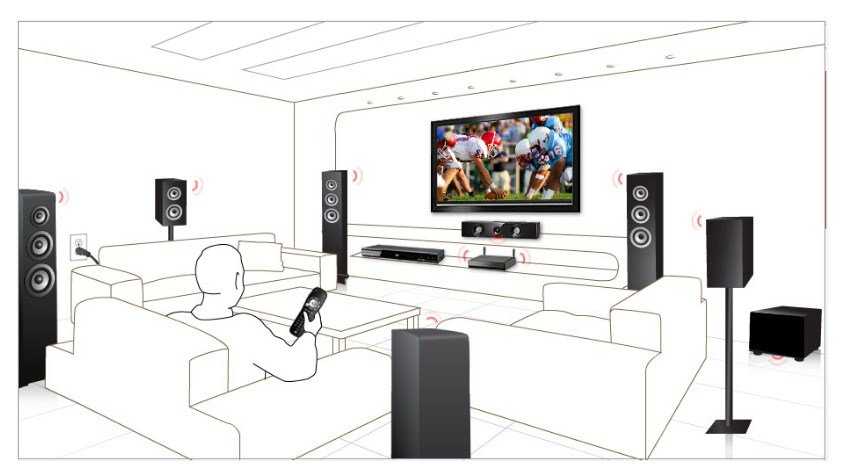 Настенные колонки в схеме подключения обеспечат домашний кинотеатр качественным звучанием