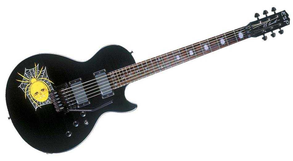 Kirk also obtained two Les Paul style guitars both of which he still uses, one a black Gibson Les Paul Custom fitted with EMG active pickups, the other a black ESP KH-3 Eclipse.