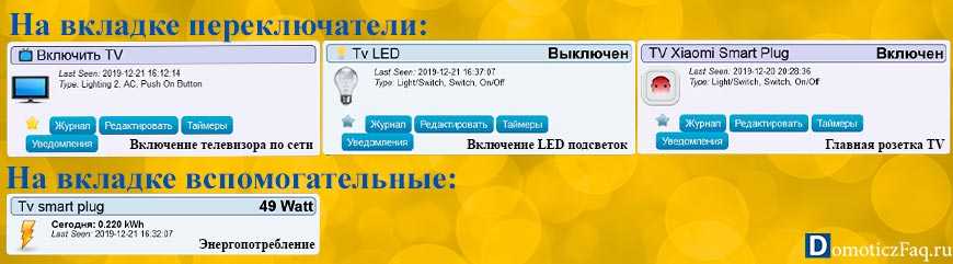 Устройство с названием «Включить TV» появилось в списке. Открываем «Настройка» -> «Устройства», ищем его. Справа наблюдаем зеленую стрелочку. Она добавит его в переключатели. В итоге получаем список: