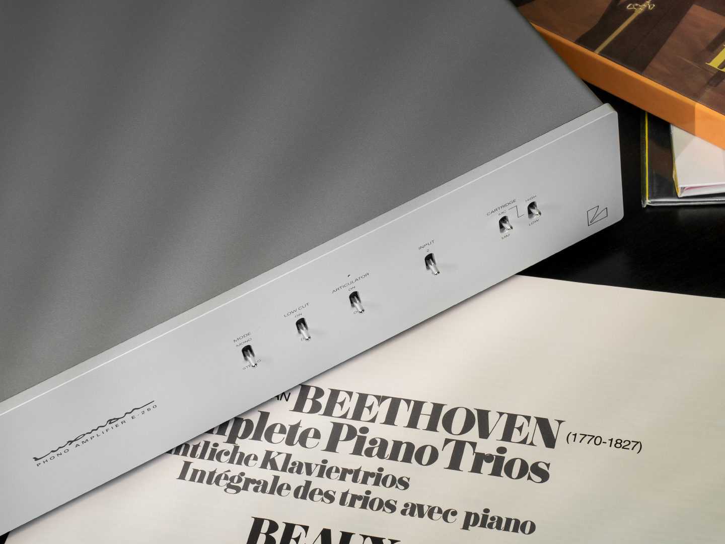 На передней панели кнопка включения-выключения, двухпозиционный переключатель входов, позволяющий сначала выбрать тип головки, а потом для MC — высокий или низкий выход. Низкий или высокий выход подразумевает возможность выбора значений 2,5 или 40 Ом.