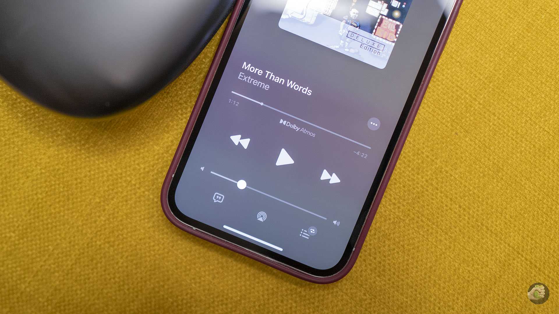 Пространственное аудио в плейлистах помечено значком Dolby Atmos. При активации этой технологии создаётся ощущение эффекта присутствия, которого можно достичь лишь с помощью систем вроде 5.1 или 7.1. По задумке, музыка, изначально сведённая для двух каналов, будет звучать так, будто бы вы находитесь в одном помещении с артистами, расположенными по всей комнате.