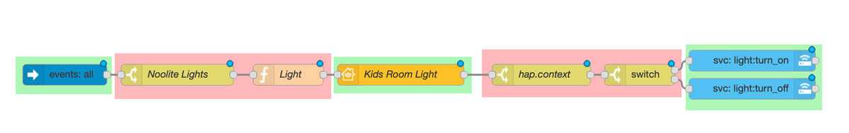 По факту пример с HomeKit примерно в два раза сложнее нашего прошлого примера, потому что последовательность действий в нашем случае усложняется из-за блока с HomeKit устройством.