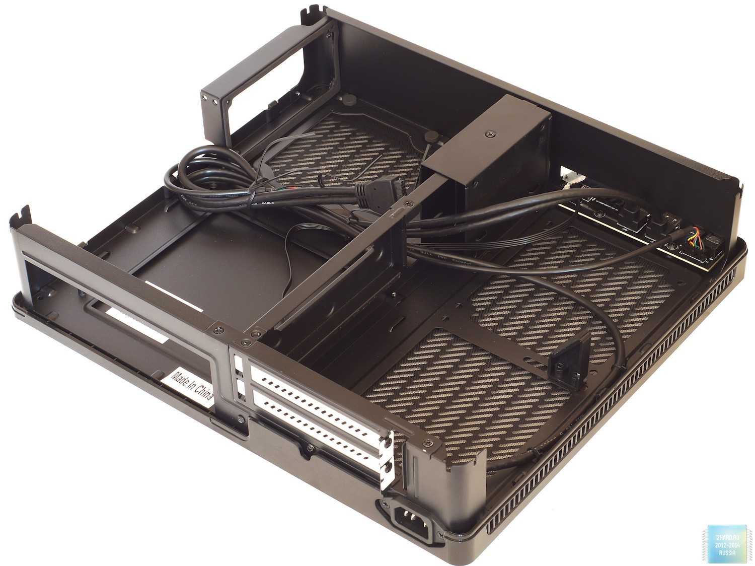 Чтобы предложить потенциальным покупателям корпус с минимальными размерами (общий его объем составляет всего 10,2 литра) производителю пришлось чем-то жертвовать и результатом этого стала невозможность установки внутрь 5.25″ привода и 3.5″ накопителей, а также ограничения по высоте кулера процессора (56 мм), применением SFX блока питания.