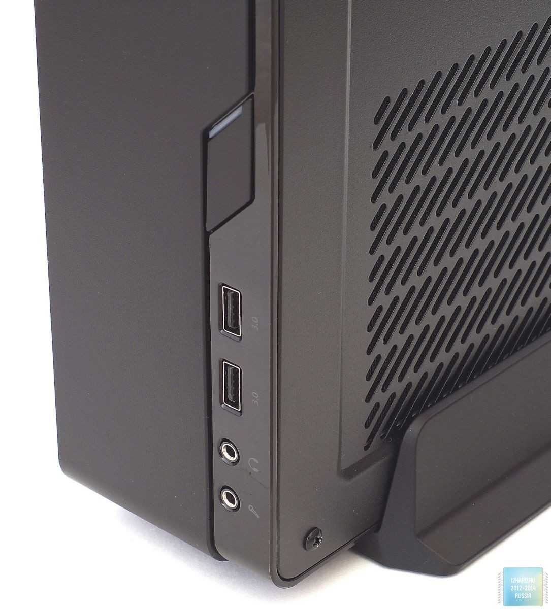 В качестве особенностей отметим, что использовать корпус в горизонтальном положении с производительной видеокартой будет невозможно из-за недостаточной эффективности охлаждения последней (если только не пытаться установить снизу дополнительные 2 х 120 мм вентиляторы для нагнетания воздуха). Так что выбирать компоненты нужно продуманно и статься использовать «холодные» решения, например процессор Intel и видеокарту Nvidia.